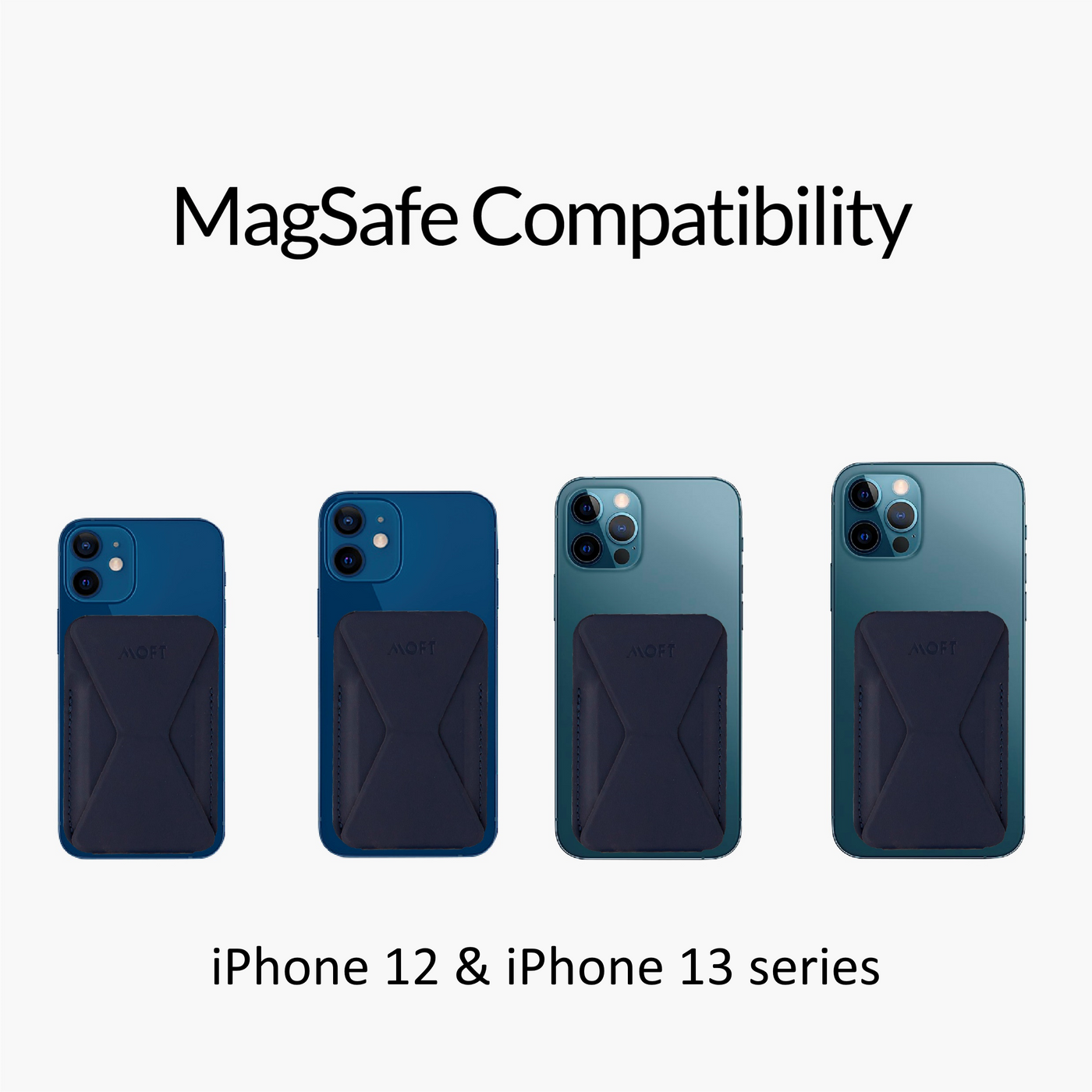 MOFT Snap On er udviklet til brug med MagSafe. Det betyder at alle iPhone 12 og 13 kan anvende Snap On direkte.